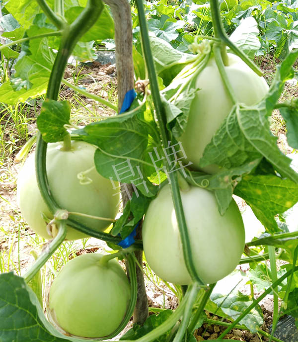 抗高溫能力強(qiáng),果皮、果肉乳白,果肉厚實(shí)、密致,皮脆肉酥,甜度高達(dá)19度;單果重600g左右。爬地1~2袋/畝、吊蔓5袋/畝。